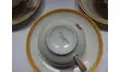 1 tasse et 1 sous-tasse présentent des points noirs (escarbilles de charbon de bois)
