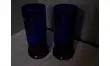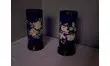 Vases rouleau verre bleu émaillé-1900